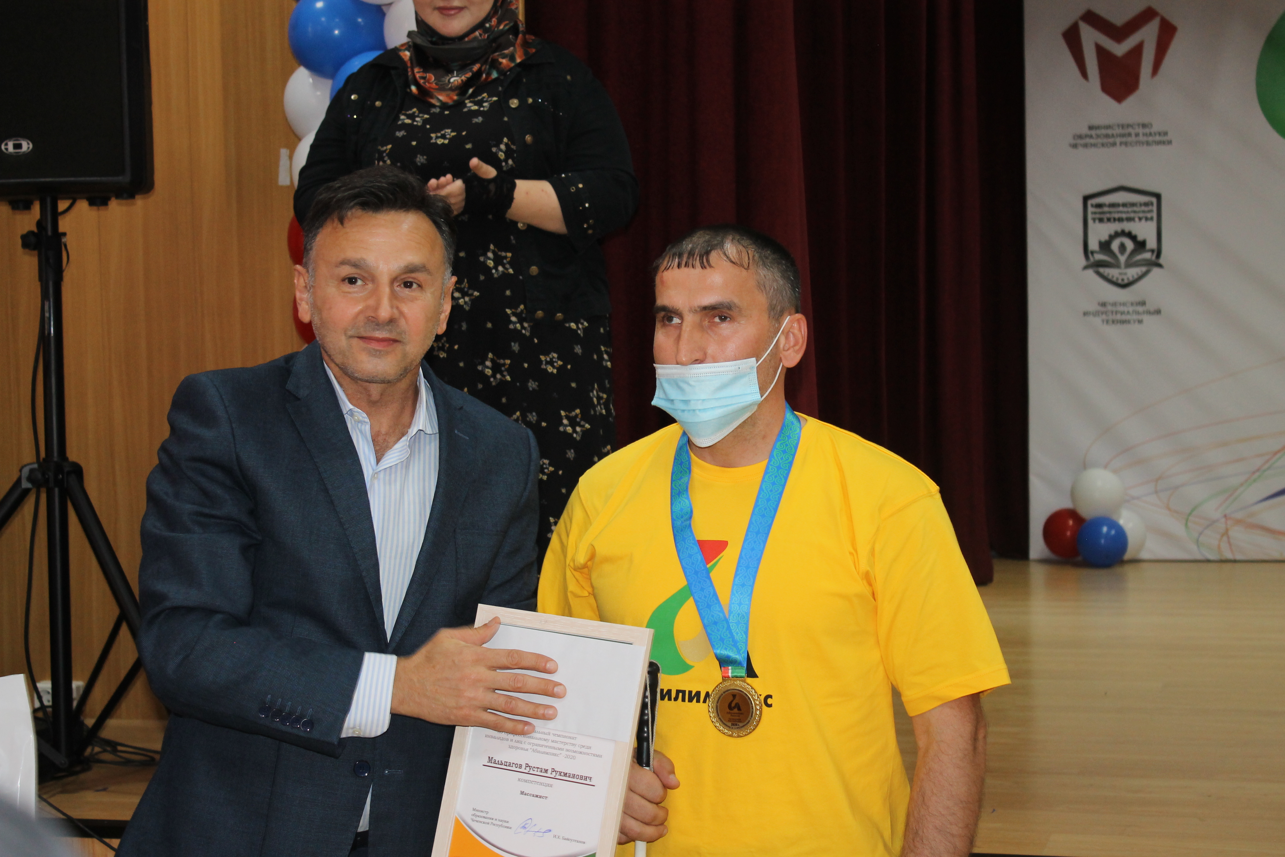 Торжественная церемония закрытия VI Регионального чемпионата «Абилимпикс» прошло сегодня 15.10.2020 г. в актовом зале ГБПОУ «Чеченский индустриальный техникум», являющегося базовой профессиональной образовательной организацией по поддержке региональной системы инклюзивного профессионального образования Чеченской Республики. В качестве приглашенных гостей на церемонии закрытии присутствовали первый заместитель министра образования и науки Чеченской Республики Тааев Ильяс Дуцаевич, представители Министерства здравоохранения Чеченской Республики, Министерства труда, занятости и социального развития Чеченской Республики, Министерства культуры Чеченской Республики. В своем выступлении Ильяс Дуцаевич поблагодарил всех участников чемпионата, организаторов, волонтеров и особенно экспертов. Пожелал всем успехов и удачи.
