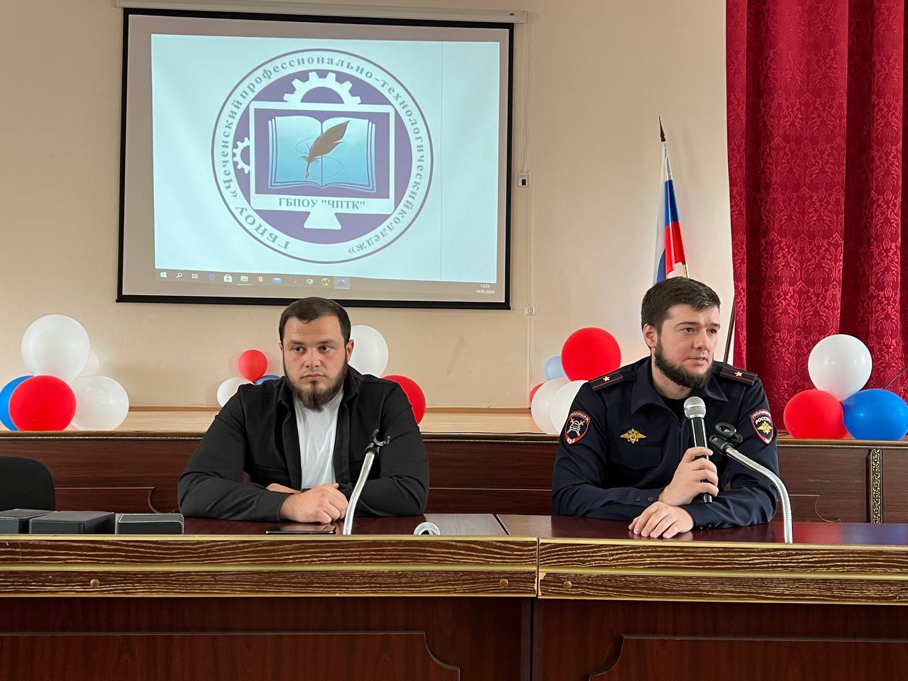 В мероприятии приняли участие: помощник председателя патриотического клуба «Путин» Тасуев И.Л. и старший инспектор по особым поручениям отделения пропаганды БДД УГИБДД МВД по ЧР Цугаев А.С.