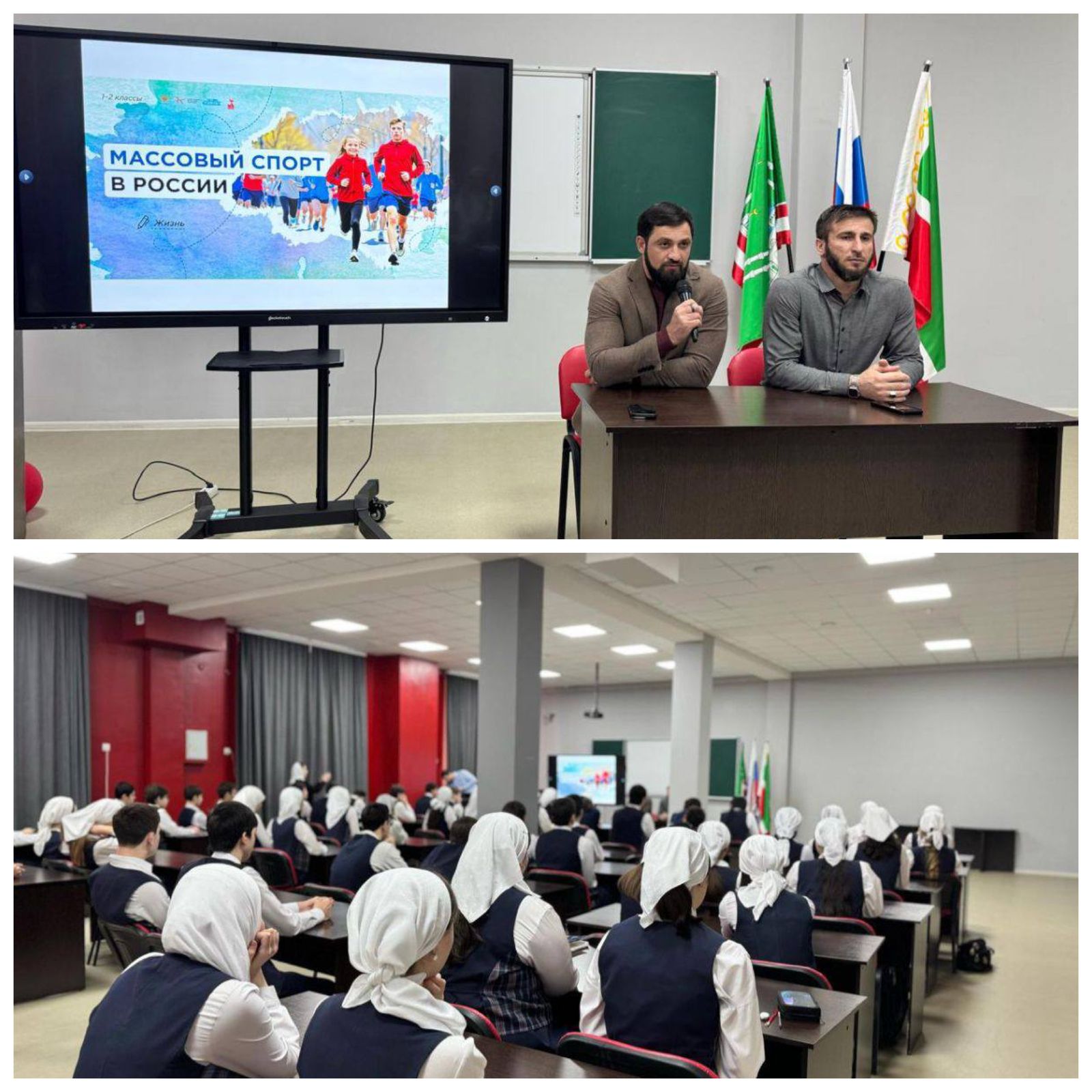 11.03.2025«Разговоры о важном» по теме: «Массовый спорт в России» - в гимназии №5 г. ГрозногоДиректор ГБПОУ «Чеченский государственный колледж экономики» Магомед Дебиев встретился с обучающимися гимназии №5 города Грозного, где провел «Разговоры о важном» на тему «Массовый спорт в России».Преимущества занятий спортом для здоровья и внешности бесспорны: мышцы укрепляются, кожа получает улучшенное кровоснабжение, что ведет к общему оздоровлению и сохранению молодости. Массовый спорт, по мнению участников встречи, выходит за рамки олимпийских достижений и спортивных рекордов. Это стиль жизни, включающий разнообразные активности — от бега и танцев до утренней зарядки, — которые способствуют укреплению здоровья и сплочению общества.В ходе встречи гимназисты с удовольствием выслушали мнение и советы Магомеда Шараудиновича Дебиева, приверженца активного спорта с детства, о значимости физической культуры для формирования личности. Обсуждались вопросы формирования характера через спорт, его способности укреплять не только тело, но и дух, открывая новые горизонты для личностного роста.Спорт, подчеркнул Магомед Шараудинович, — это не только о здоровье, но и о дружбе, взаимопомощи, трудолюбии и стремлении к успеху. Он становится мощным инструментом объединения людей и формирования здорового общества.